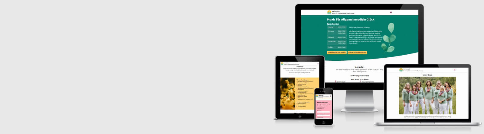 Bei dieser Webseite für eine Allgemeinärztin war das eher nicht unser Fokus: Es geht nicht primär darum, neue Kundschaft zu gewinnen, sondern ihre Patient:innen zu informieren. Also gibt es ganz oben als erstes einen kleinen Einführungstext und die Öffnungszeiten der Praxis. Der jeweils aktuelle Wochentag wird hervorgehoben, und darunter gibt es schnelle Links zu einer externen Webseite zwecks Terminanfrage sowie zum Kontaktformular weiter unten.
